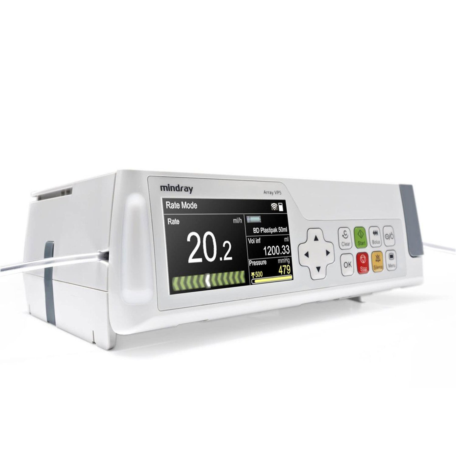 Объемный насос Mindray BeneFusion VP3 имеет пять инфузионных режимов: “Скорость”, “Время”, “Масса тела”, “Скорость падения” и “Последовательный”. Аппарат может использоваться в машине скорой помощи. Аппарат можно подключить через Wi-Fi, а также к док-станции
